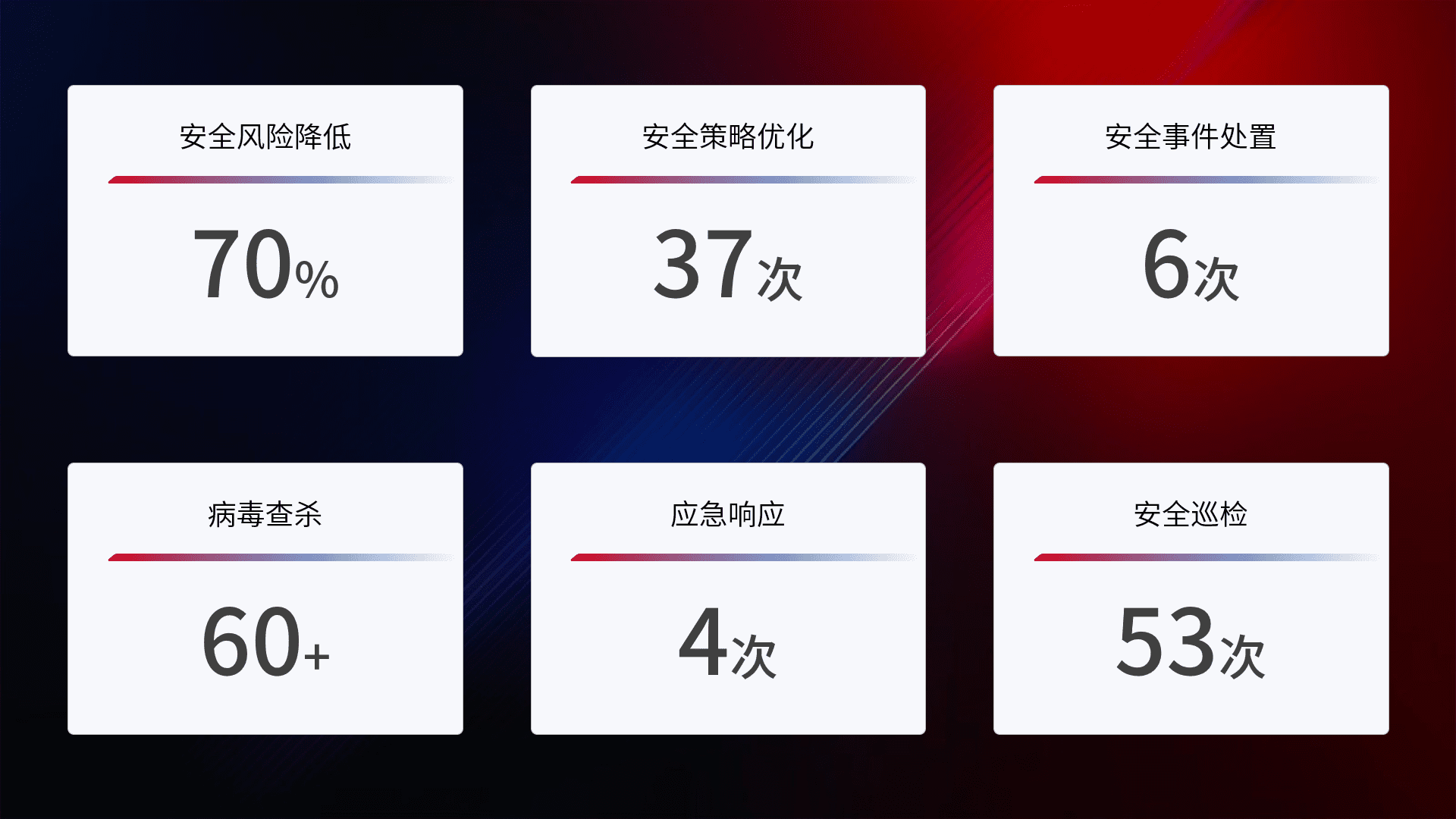 提供全面的安全事件报告体系,,,包括处置报告、、、周报、、季度和年度总结,,,结合持续监控,,帮助客户深入了解网络安全状况。。