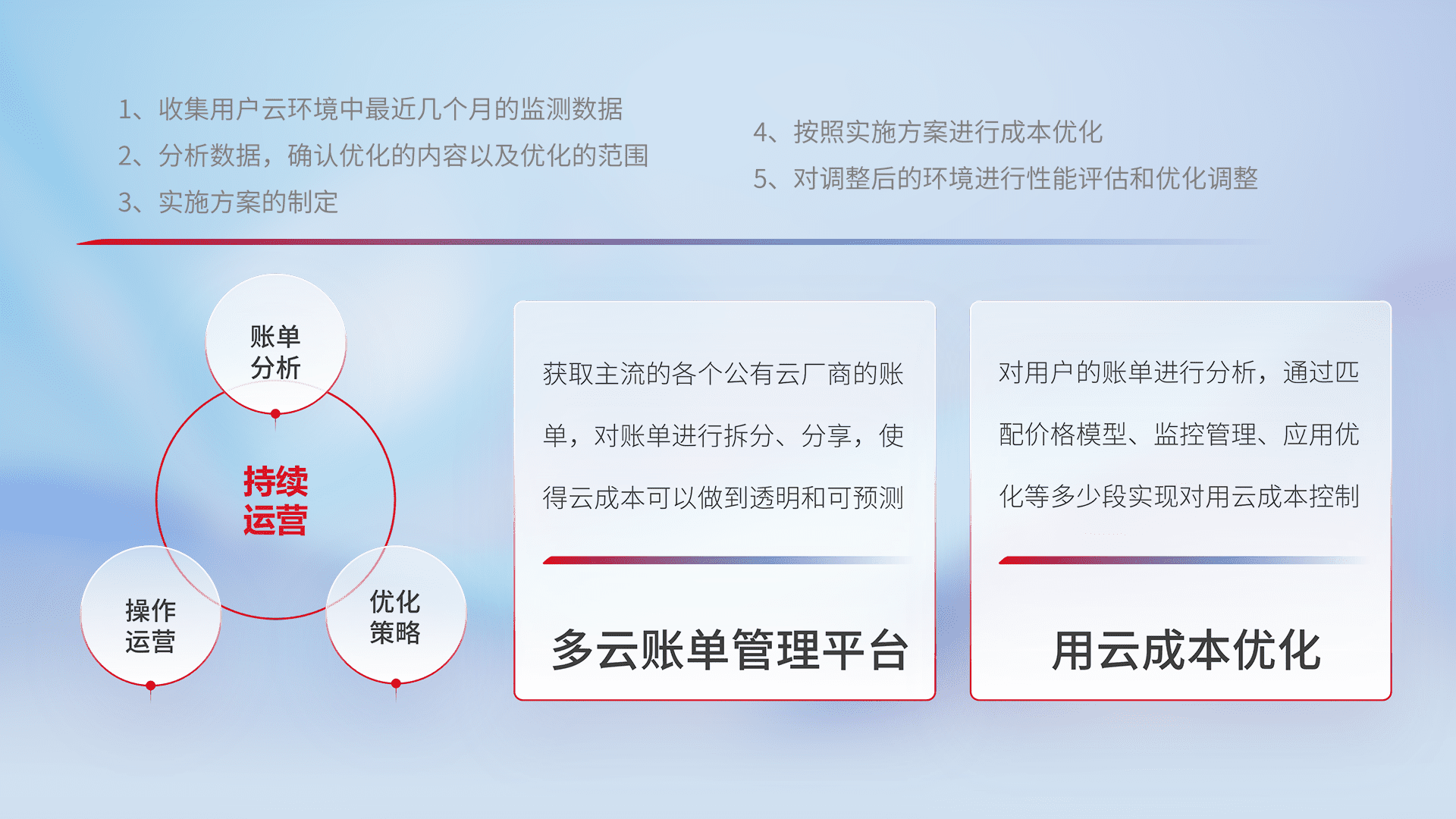 监控业务系统资源开销,,,,对资源的消耗精确计量,,,,实现费用的透明化管理,,不断提升资源使用率,,,,调整资源购买方式,,,降低资源费用成本,,用云成本可预测、、、用云费用可优化,,云资源配额有据可依。。。。