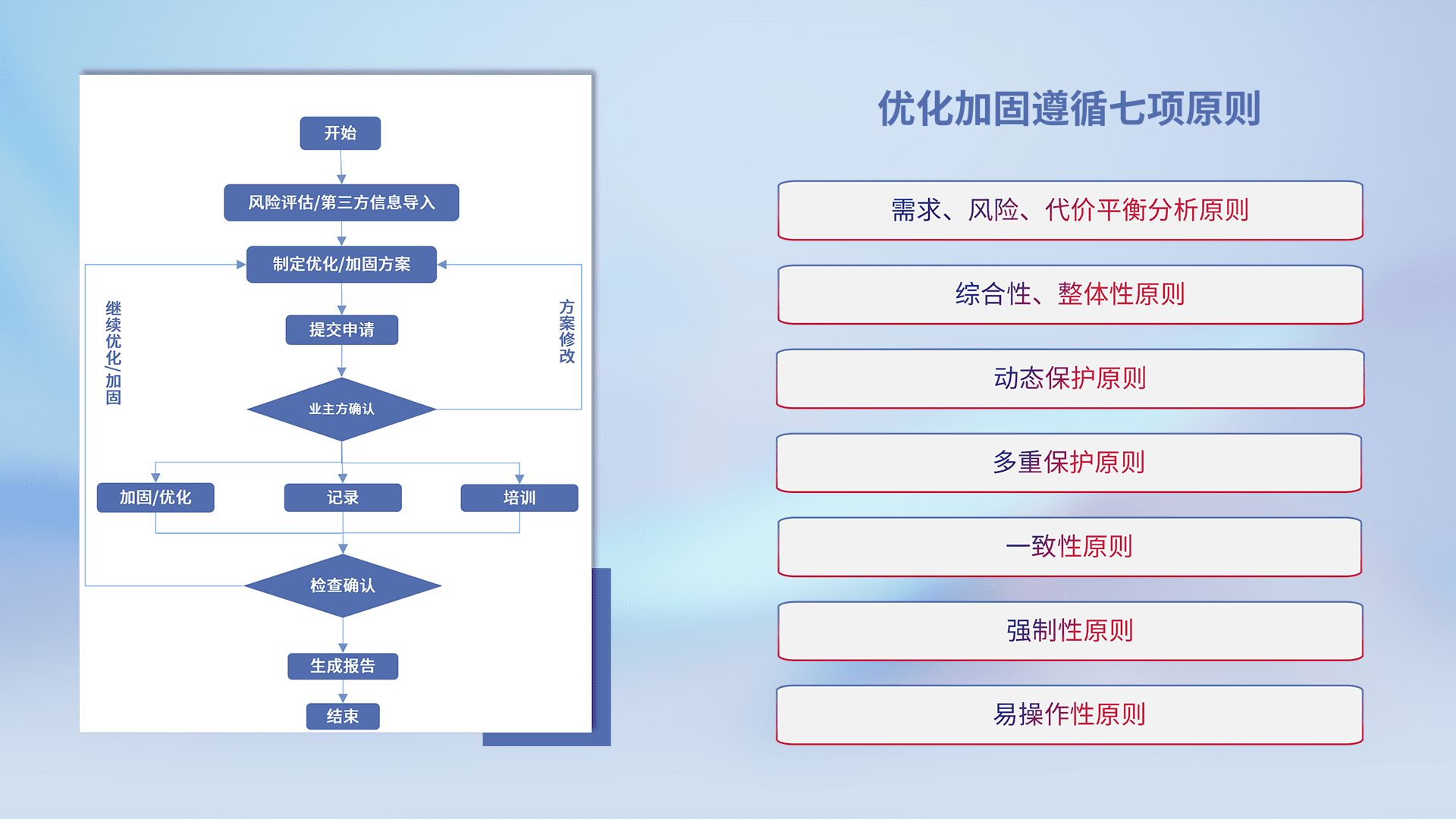 最大程度利用现有资产,,,对评估发现的问题进行封堵与整改,,防止漏洞被利用,,提升整体网络安全性,,,,为客户带来高标准的优化加固服务。。